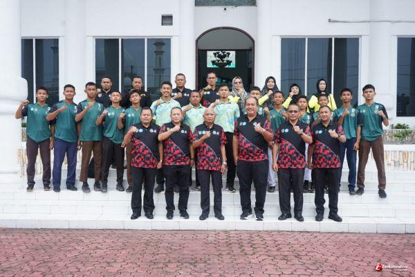 ASAHAN | Bupati Asahan H. Surya, BSc bersama dengan Wakil Bupati Asahan Taufik Zainal Abidin Siregar, S. Sos, M. Si melepas Tim Kesebelasan Gala Siswa Indonesia (GSI) Tingkat SMP Kabupaten Asahan di Aula Mawar Kantor Bupati Asahan, Jum'at (13/10/2023). Tim Kesebelasan GSI Tingkat SMP Kabupaten Asahan ini dilepas untuk mewakili Tim Kesebelasan SMP Tingkat Provinsi Sumatera Utara (Provsu) berlaga di Tingkat Nasional di Bogor.
