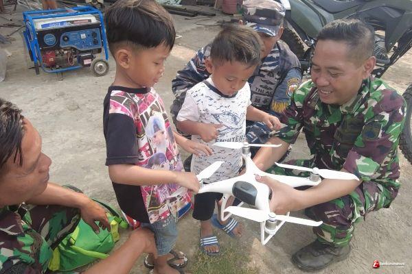 Satgas TMMD Reguler 118 Purwogondo Memperkenalkan Anak-Anak Bermain Drone