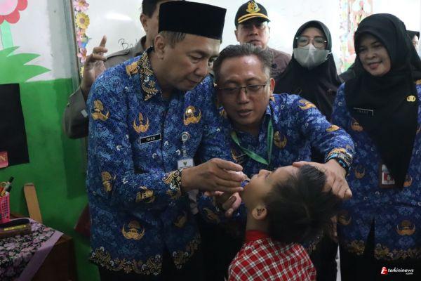 BREBES - Penjabat (Pj) Bupati Brebes Iwanuddin Iskandar SH MHum meninjau pelaksanaan Sub Pekan Imunisasi Nasional (PIN) Polio meninjau pos vaksinasi, Rabu (17/1/2024). Peninjauan dilakukan untuk memastikan kelancaran vaksinasi. Iwanuddin meninjau tiga pos vaksinasi di PAUD Harapan Umat Brebes, SDIT Harapan Umat Brebes dan Posyandu Empat Sekawan Kelurahan Limbangan Wetan, Brebes. Di Pos Vaksinasi, Pj Bupati Brebes didampingi Istri Ny Dewi Wika Iwanuddin bersama Kepala Dinas Kesehatan Ineke Tri Sulistyowati SKM MKes.