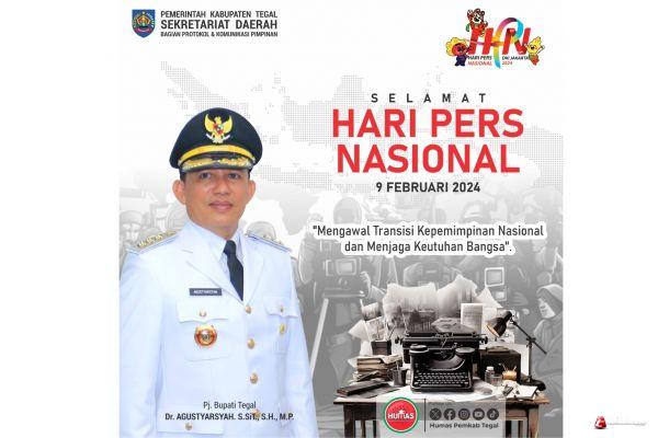 TEGAL - Pemerintah Kabupaten Tegal mengucapkan selamat Hari Pers Nasional tahun 2024 Mengambil tema " Mengawal Transisi Kepemimpinan Nasional dan Menjaga Keutuhan Bangsa".