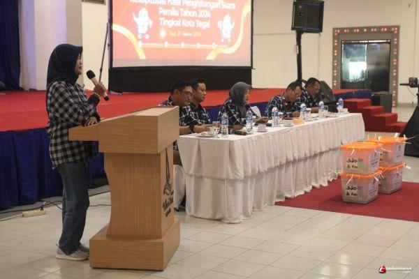 Hal tersebut disampaikan Komisi Pemilihan Umum (KPU) Kota Tegal saat Rapat Pleno Terbuka Rekapitulasi Hasil Penghitungan Suara Pemilu Tahun 2024 Tingkat Kota Tegal di Hotel Bahari Inn, Selasa (27/02/2024).