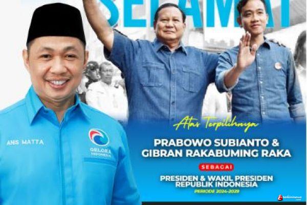 JAKARTA - TERKININEWS.COM - Ketua Umum Partai Gelombang Rakyat (Gelora) Indonesia Anis Matta menyampaikan ucapan terima kasih kepada seluruh rakyat Indonesia, khususnya pemilih yang telah untuk pertama kalinya menjadi bagian dari pemilih Partai Gelora di Pemilu 2024.