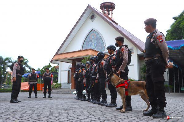 TEGAL - Untuk memastikan keamanan rangkaian perayaan Paskah, Polres Tegal Kota menggelar pengamanan tempat ibadah gereja di Kota Tegal.
