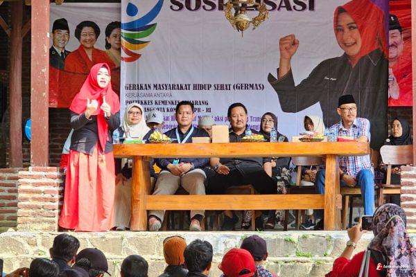 TEGAL - Dalam rangka kunjungan ke Daerah Pemilihan Jawa Tengah IX (Dapil IX), pada tanggal 31 Mei sampai 2 Juni 2024, Dr. Dewi Aryani. M.Si Anggota Komisi IX DPR RI Fraksi PDI Perjuangan menggelar kegiatan Sosialisasi Germas (Gerakan Masyarakat Hidup Sehat). Kegiatan dilaksanakan di Rumah Makan Siwuni, Kecamatan Balapulang di daerah pegunungan nan sejuk dan dihadiri ratusan peserta dari Kecamatan Balapulang, Lebaksiu, Bojong, Bumijawa dan Jatinegara.