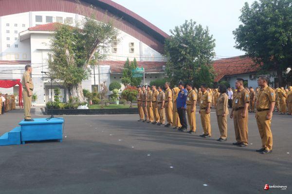 Staf Ahli Wali Kota Bidang Pembangunan, Ekonomi dan Keuangan Setda Kota Tegal, Subagyo saat memimpin Apel Bersama ASN Pemkot Tegal, Senin Pagi (3/6/2024) di Halaman Pendopo Ki Gede Sebayu mengingatkan perubahan jam kerja Pegawai ASN di Lingkungan Pemkot Tegal.