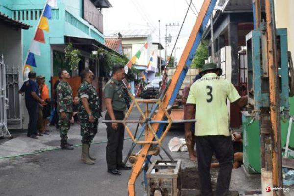 Yogyakarta - Dansatgas TMMD reguler Kodim 0734/Kota Yogyakarta, Letkol Inf Devy Kristiono S.E,M.Si., meninjau langsung pembuatan Sumur Bor di Langgar Asyura Gedung serbaguna RT 26 RW 06 Warungboto, Kemantren Umbulharjo, Kota Yogyakarta, Senin (29/07/2024).