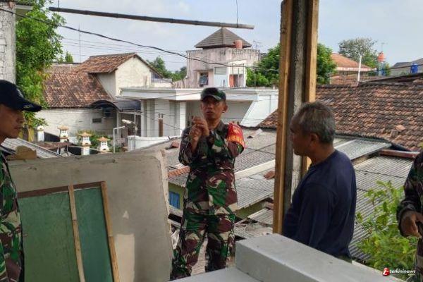 Yogyakarta - Komandan Satgas TMMD Reguler ke -121 Kodim 0734/Kota Yogyakarta Letkol Inf Devy Kristiono S.E, M.Si dengan didampingi Tim Asistensi Kapten Inf Restu Sujoko terjun langsung dan memberikan arahan tentang desain bangunan saat mengawali Rehab RTLH ibu Tuwuh, Sanggrahan UH 7/452 RT. 30 RW. 10, Kelurahan Giwangan, Kemantren. Umbulharjo, Kota Yogyakarta, Selasa (03/08/2024).