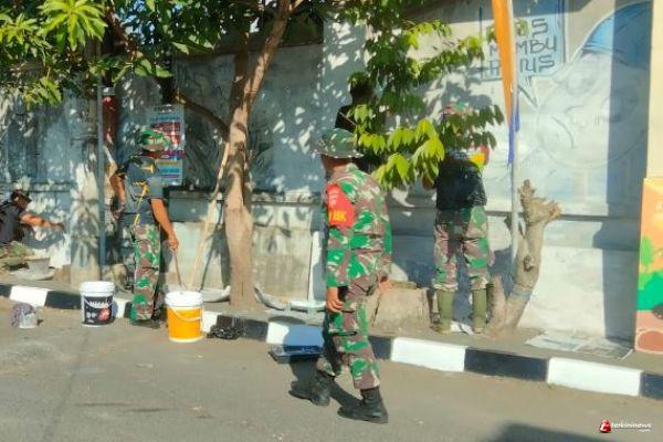 Peduli Lingkungan Sekitar, Satgas TMMD Cat Pagar Bagian Luar Terminal Giwangan