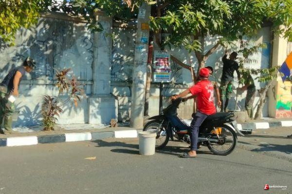 Dan SSK TMMD Reguler Ke-121 Kodim Kodim 0734/Kota Yogyakarta Lettu Inf Mufti mengatakan, sebelum melaksanakan pengecatan pagar bagian luar terminal Giwangan, terlebih dahulu kita bersihan dulu dengan menggunakan kuas untuk menghilangkan debu yang menempel sehingga mempermudah proses pengecatan dan hasilnya pun bisa maksimal.