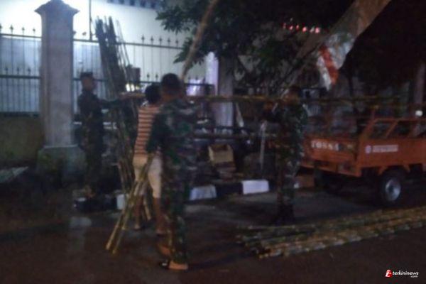 Wiwid sebagai Babinsa Setempat yang juga sebagai pembina wilayah, mengatakan “Bambu yang sudah kita kumpulkan ini besok akan di cat, agar warna seragam