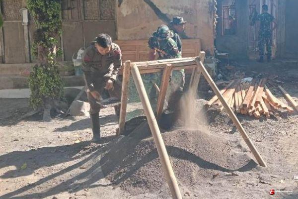 Satgas TMMD Bergelut Dengan Pasir Dan Semen Untuk Mempercepat Rehab Rumah