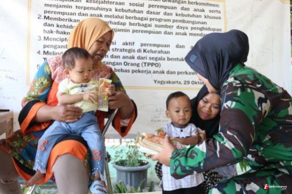 Kegiatan penyuluhan stunting dirangkaikan dengan pemberian makanan tambahan/asupan gizi untuk balita diberikan secara langsung oleh Pasipes Kodim 0734/Kota Yogyakarta, Mayor Cpm (K) Septi Rahmawati, S.H. M.H.