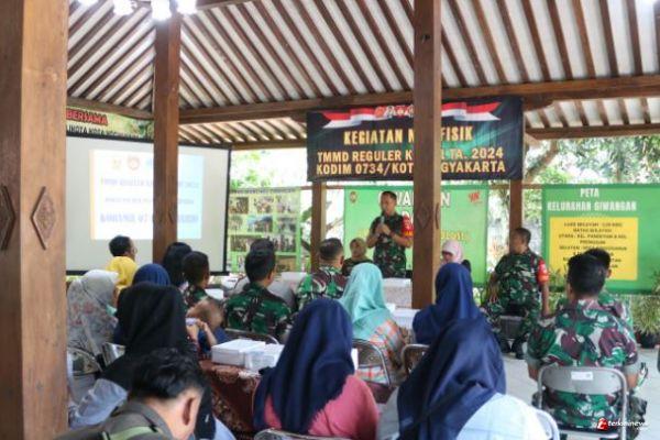 Yogyakarta - Kegiatan TMMD Reguler Ke-121 Kodim 0734/Kota Yogyakarta Tahun Anggaran 2024 selain mengerjakan sasaran fisik berupa Pembangunan Talud, Pembangunan Balai RW, Rehab RTLH, pembanguan SAH (Saluran Air Hujan) pembuatan MCK umum, juga pelaksanaan sasaran non fisik berupa penyuluhan atau sosialisasi.