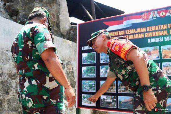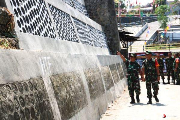 Yogyakarta - Tim Wasev Itdam IV/Diponegoro melakukan tinjauan langsung terhadap progres pembangunan talud dalam rangka pelaksanaan TNI Manunggal Membangun Desa (TMMD) Ke-121 di Makam Kyai Wongso Sukarto, Jalan AMD kampung Mrican, Kelurahan Giwangan, Kemantren Umbulharjo, Kota Yogyakarta, Selasa (13/8/2024).