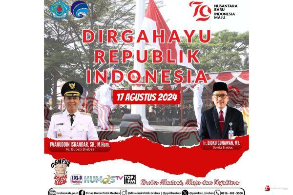 BREBES - Pemerintah Kabupaten Brebes Mengucapkan Dirgahayu Ke-79 Republik Indonesia Sabtu 17 Agustus 2024 bertemakan " Nusantara Baru Indonesia Maju".