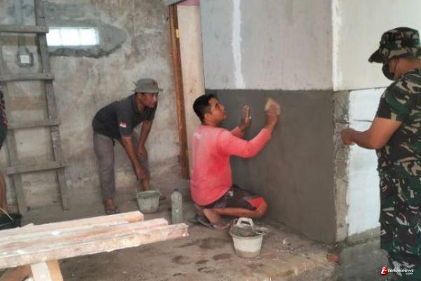Yogyakarta - Renovasi Rumah Tidak Layak Huni (RTLH) milik Bapak Turisman warga Mrican Uh 7/392, RT. 24, RW. 8 Giwangan, Umbulharjo sudah hampir selesai, Satgas TNI Manunggal Membangun Desa (TMMD) reg Ke-121 Kodim 0734/Kota Yogyakarta terus mengebut pekerjaan rehab RTLH, Kamis (15/8/2024).