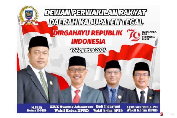 TEGAL - Dewan Perwakilan Rakyat Daerah (DPRD) Kabupaten Tegal Mengucapkan Dirgahayu Ke-79 Republik Indonesia (17 Agustus 2024) bertemakan " Nusantara Baru Indonesia Maju".