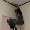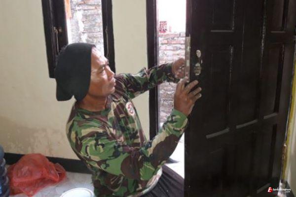 Yogyakarta – Satgas TMMD Reguler ke-121 Kodim 0734/Yogyakarta Serka Jiyan bersama anggota lainya terlihat semangat dalam proses pembangunan RTLH milik Bapak Agus Prasetiyo Dusun Mrican Rt. 24 Rw.08 Kelurahan Giwangan, Kemantren Umbulharjo, Kota Yogyakarta dimana proses finishing pengecatan ternit dan pemasangan handle pintu yang hampir selesai, Senin (19/08/2024).