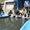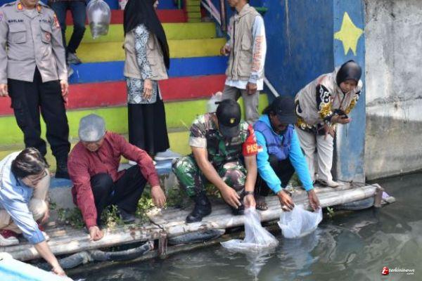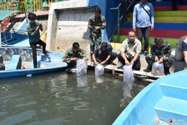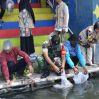 Satgas TMMD bersama Dinas Pertanian Dan Pangan Kota Yogyakarta dan Polsek, Koramil, Kelurahan, ketua RW, RT setempat bersama warga, melepas benih ikan jenis Nila dan Melem sebanyak 8000 ekor di sungai Gajahwong tepatnya dilokasi wisata Dermaga Cinta. Selasa (20/08/2024)