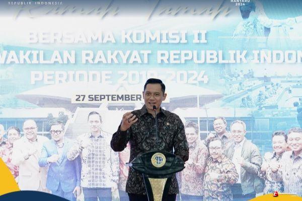 JAKARTA - Kementerian Agraria dan Tata Ruang/Badan Pertanahan Nasional (ATR/BPN) menyelenggarakan Ramah Tamah bersama Komisi II Dewan Perwakilan Rakyat Republik Indonesia (DPR RI Periode 2019-2024 pada Jumat (27/09/2024) di Kementerian ATR/BPN, Jakarta. Dalam kegiatan ini, Menteri ATR/Kepala BPN, Agus Harimurti Yudhoyono (AHY) menyampaikan apresiasinya kepada seluruh Pimpinan dan Anggota Komisi II DPR RI atas dukungan yang diberikan ke Kementerian ATR/BPN, sehingga seluruh program dapat berjalan dengan lancar.