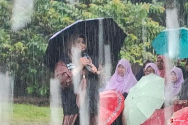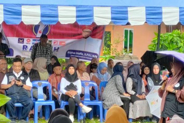 Dengan dihadiri oleh ratusan warga, suasana kampanye terasa hangat meskipun hujan lebat masih mengguyur. Warga dari berbagai kalangan, mulai dari pemuda hingga lansia, berbondong-bondong mengikuti acara tersebut di bawah tenda yang disediakan.