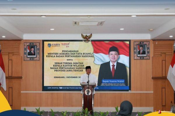 SEMARANG - Menteri Agraria dan Tata Ruang/Kepala Badan Pertanahan Nasional (ATR/BPN), Nusron Wahid melakukan kunjungan kerja pertamanya ke Jawa Tengah, tepatnya Kota Semarang pada Jumat (01/11/2024). Dalam pengarahan ke jajaran Kantor Wilayah (Kanwil) BPN Provinsi Jawa Tengah, Menteri Nusron mengatakan kunjungan dilakukan untuk konsolidasi pemikiran dan menyamakan langkah ke depan.