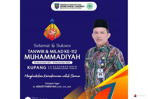 TEGAL - Pemerintah Kabupaten Tegal Mengucapkan selamat dan sukses Tanwir dan Milad ke 112 Muhammadiyah 18 November 1912 - 18 November 2024.