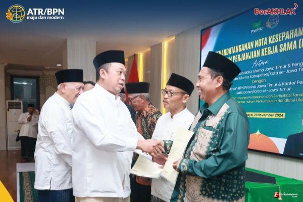 Sebelum penyerahan sertipikat tanah wakaf ini, Menteri Nusron menyaksikan penandatanganan Nota Kesepahaman/MoU antara Kantor Wilayah BPN dengan PWNU Jawa Timur serta Perjanjian Kerja Sama (PKS) antara Kantor Pertanahan dengan Pengurus Cabang Nahdlatul Ulama (PCNU) se-Provinsi Jawa Timur. Kerja sama yang dilakukan terkait dengan Percepatan Layanan Pertanahan dan Sertipikasi Tanah Milik dan Tanah Wakaf Badan Hukum Perkumpulan NU.