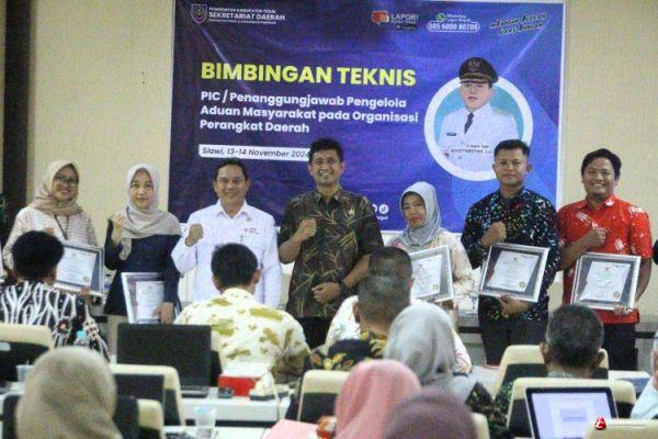 Mengakhiri kegiatan bimtek, sepuluh orang person in charge (PIC) atau admin Lapor Bupati Tegal di intansi yang dinilai aktif merespon pengaduan masyarakat diberikan penghargaan. Mereka antara lain PIC dari BPJS Kesehatan, Kecamatan Margasari, Dinas Pekerjaan Umum dan Penataan Ruang, Kecamatan Slawi, Kecamatan Pangkah, Kecamatan Tarub, Dinas Perhubungan, Dinas Lingkungan Hidup, Dinas Sosial dan Dinas Kependudukan dan Catatan Sipil.