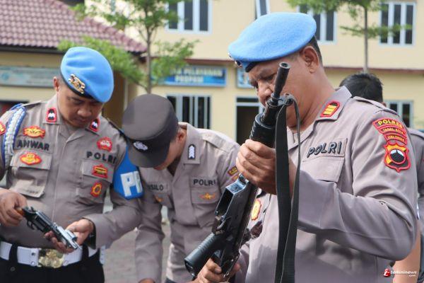 "Pengecekan ini juga sebagai langkah untuk mengantisipasi terjadinya pelanggaran oleh anggota. Serta mengetahui masih layak dan tidaknya senpi yang anggota bawa," terang AKP Bambang.