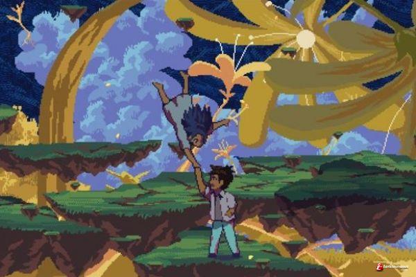 Seni gim piksl ini memikat dengan langit biru kehijauan dan atap genteng merah. Tapi kontrasnya justru menguatkan tema. Seperti kehidupan nyata, keindahan sering menyembunyikan luka. Adegan ketika langit cerah tiba-tiba berubah merah darah adalah analogi sempurna untuk krisis mental yang tak terduga.
