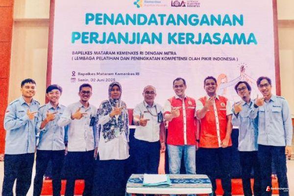 MATARAM - TERKININEWS.COM - Balai Pelatihan Kesehatan (BAPELKES) Mataram KEMENKES RI resmi menjalin kerja sama dengan Lembaga Olah Pikir Indonesia (LOA Indonesia). Kemitraan ini dalam rangka meningkatkan kompetensi sumber daya manusia di sektor kesehatan. Penandatanganan perjanjian kerja sama bertempat di Aula BAPELKES Mataram, Senin (2/6/2025).