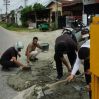 Febri E. Gurusinga, Camat Kec. Namorambe Turun Langsung Perbaiki Jalan Rusak