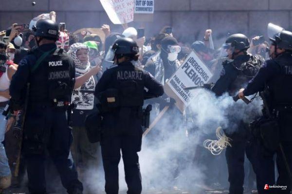 INTERNASIONAL - TERKININEWS.COM - Departemen Kepolisian Los Angeles (LAPD) menyatakan telah menetapkan status "kerumunan ilegal" di kawasan pusat pemerintahan kota Los Angeles, dan menangkap sejumlah orang yang terlibat dalam aksi unjuk rasa.