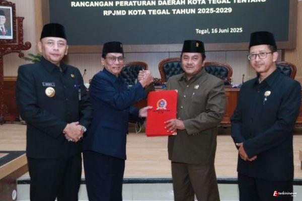 Penandatanganan dan penyerahan Raperda tersebut dilaksanakan pada Rapat Paripurna Penyampaian Jawaban Wali Kota Tegal atas Pemandangan Umum Fraksi-fraksi DPRD Kota Tegal, terhadap Rancangan Peraturan Daerah (Raperda) Kota Tegal, tentang Rencana Pembangunan Jangka Menengah Daerah (RPJMD) Kita Tegal, tahun 2025-2029, di Ruang Paripurna DPRD Kota Tegal, Senin (16/6/2025).