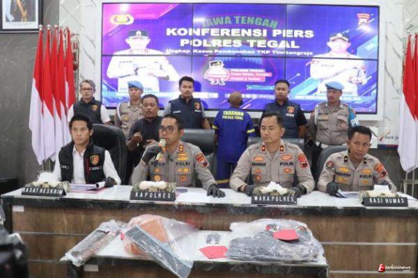 TEGAL - TERKININEWS.COM - Polres Tegal menggelar konferensi pers terkait kasus pembunuhan di Desa Timbangreja, Kecamatan Lebaksiu, Kabupaten Tegal, pada Senin, 30 Juni 2025.