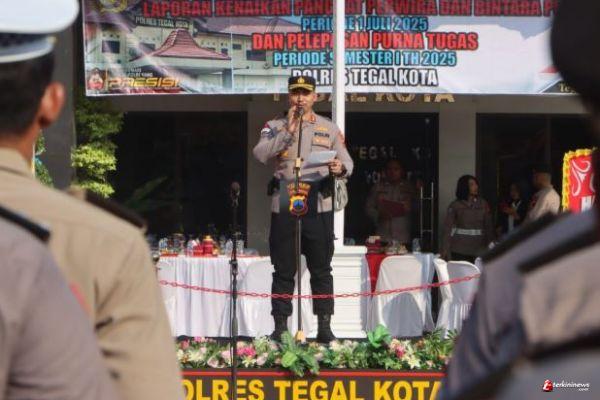 Dalam sambutannya, Kapolres Tegal Kota mengucapkan selamat dan bangga kepada personel yang naik pangkat dan yang telah memasuki masa purna tugas.