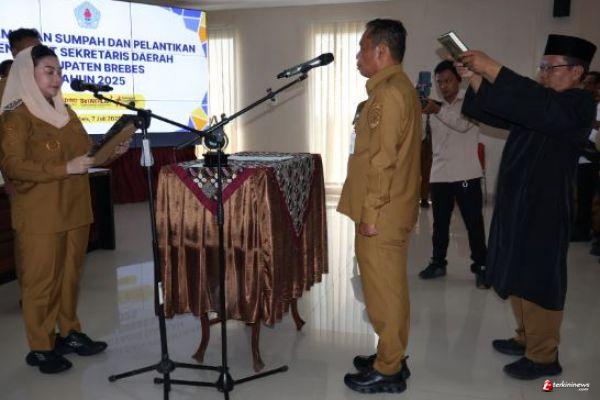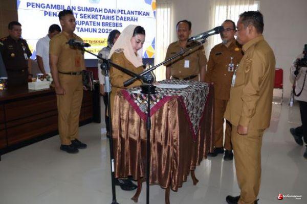 TEGAL - TERKININEWS.COM - Bupati Brebes, Paramitha Widya Kusuma, SE, MM, resmi melantik Dr. Tahroni sebagai Penjabat (Pj) Sekretaris Daerah (Sekda) Brebes. Pelantikan berlangsung di Lantai V Kantor Pemerintah Terpadu (KPT) Brebes pada Senin (7/7/2025).