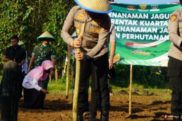 TEGAL - TERKININEWS.COM – Dalam rangka mendukung program ketahanan pangan nasional, Kepolisian Resor Tegal (Polres Tegal) bekerja sama dengan Kelompok Tani (Poktan) dan Perhutani KPH Balapulang melaksanakan kegiatan penanaman jagung aerotik di lahan perhutanan sosial petak 88C, Desa Banjaranyar, Kecamatan Balapulang, Rabu (9/7/2025).