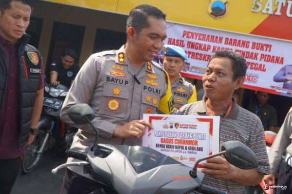 Polres Tegal Serahkan 7 Unit Sepeda Motor Hasil Pengungkapan Kasus Curanmor Kepada Pemilik Sahnya