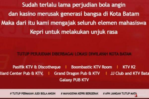 Cipayung Plus Kepri Desak Penutupan Judul Gelper di Batam