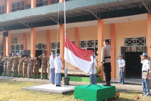 “Patuhi tata tertib berlalu lintas dan tanamkan semangat belajar. Gantungkan cita-citamu setinggi langit, namun jangan lupakan adab dan akhlak. Hormati orang tua, guru, dan banggakan nama baik sekolah,” ujar Ipda Untung membacakan pesan Kapolres.