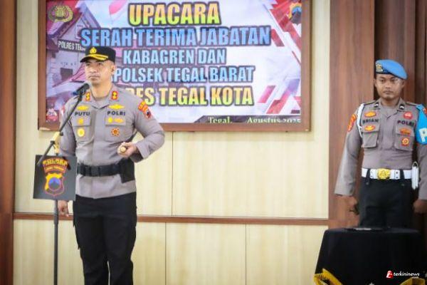 KOTA TEGAL - TERKININEWS.COM - Polres Tegal Kota menggelar serah terima jabatan (sertijab) dua posisi penting. Yakni Kapolsek Tegal Barat dan Kepala Bagian Perencanaan (Kabagren), dalam upacara resmi di Gedung Bhayangkari, Mapolres Tegal Kota, Senin (11/8/2025).
