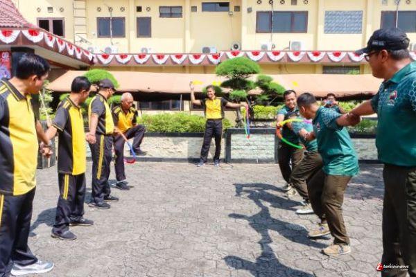 KOTA TEGAL - TERKININEWS.COM – Polres Tegal Kota menggelar kegiatan olahraga bersama dan berbagai perlombaan seru yang melibatkan personel TNI dan Polri di wilayah Kota Tegal, Kamis (14/8/2025), dalam rangka menyambut dan memeriahkan HUT Kemerdekaan Republik Indonesia ke-80.