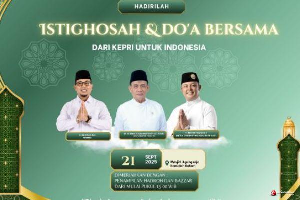 BATAM - Wakil Ketua III DPRD Provinsi Kepulauan Riau, H. Bahktiar, Lc, MA, menginisiasi kegiatan Istighosah dan Doa Bersama untuk bangsa Indonesia. Kegiatan ini akan diselenggarakan pada Ahad, 21 September 2025, bertempat di Masjid Agung Raja Hamidah, Batam Center, mulai pukul 07.30 WIB.
