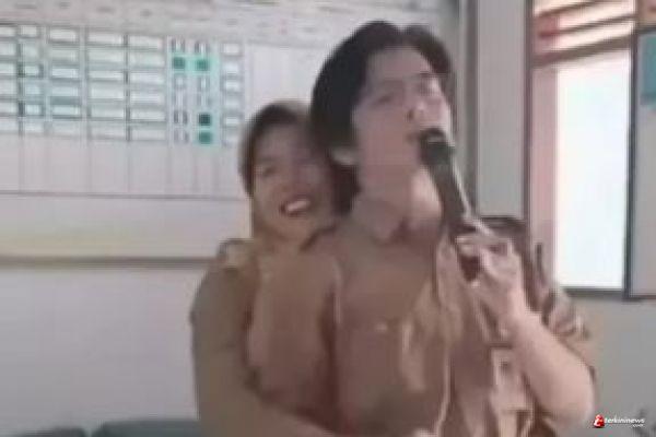 Yang menarik perhatian, keduanya masih mengenakan seragam dinas sekolah. Mereka tampak berdiri sambil berpegangan tangan dan bernyanyi menggunakan perangkat Smart TV sebagai alat karaoke. Hingga kini, belum diketahui apakah keduanya memiliki hubungan khusus atau hanya sebatas rekan kerja.