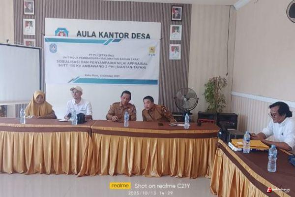 KUBURAYA - TERKININEWS.COM - 13 Oktober 2025 — PT PLN (Persero) Unit Induk Pembangunan (UIP) Kalimantan Bagian Barat melaksanakan kegiatan Sosialisasi dan Penyampaian Nilai Appraisal untuk proyek pembangunan Saluran Udara Tegangan Tinggi (SUTT) 150 kV Ambawang–2 PHI (Siantan–Tayan) di Desa Sungai Ambawang Kuala, Kabupaten Kubu Raya.