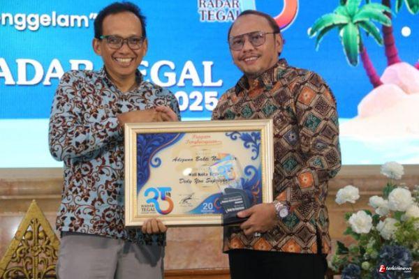 KOTA TEGAL - TERKININEWS.COM - Wali Kota Tegal, Dedy Yon Supriyono, menerima Penghargaan Adiguna Bakti Nusantara dari Radar Tegal atas keberhasilannya dalam menekan angka stunting di Kota Tegal.