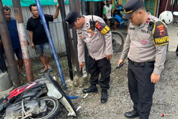 Dari pemeriksaan awal, motor yang melaju dari arah barat ke timur diduga melaju cepat. Saat hendak berbelok, pengendara kehilangan kendali sehingga terpental ke jalur berlawanan dan menabrak truk yang datang dari arah utara.