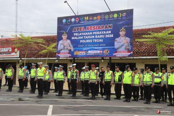 TEGAL - TERKININEWS.COM - Dalam rangka memastikan kesiapan pelayanan dan pengamanan perayaan Malam Tahun Baru 2026, Polres Tegal menggelar Apel Kesiapan Pelayanan di Kabupaten Tegal pada Rabu (31/12/2025).
